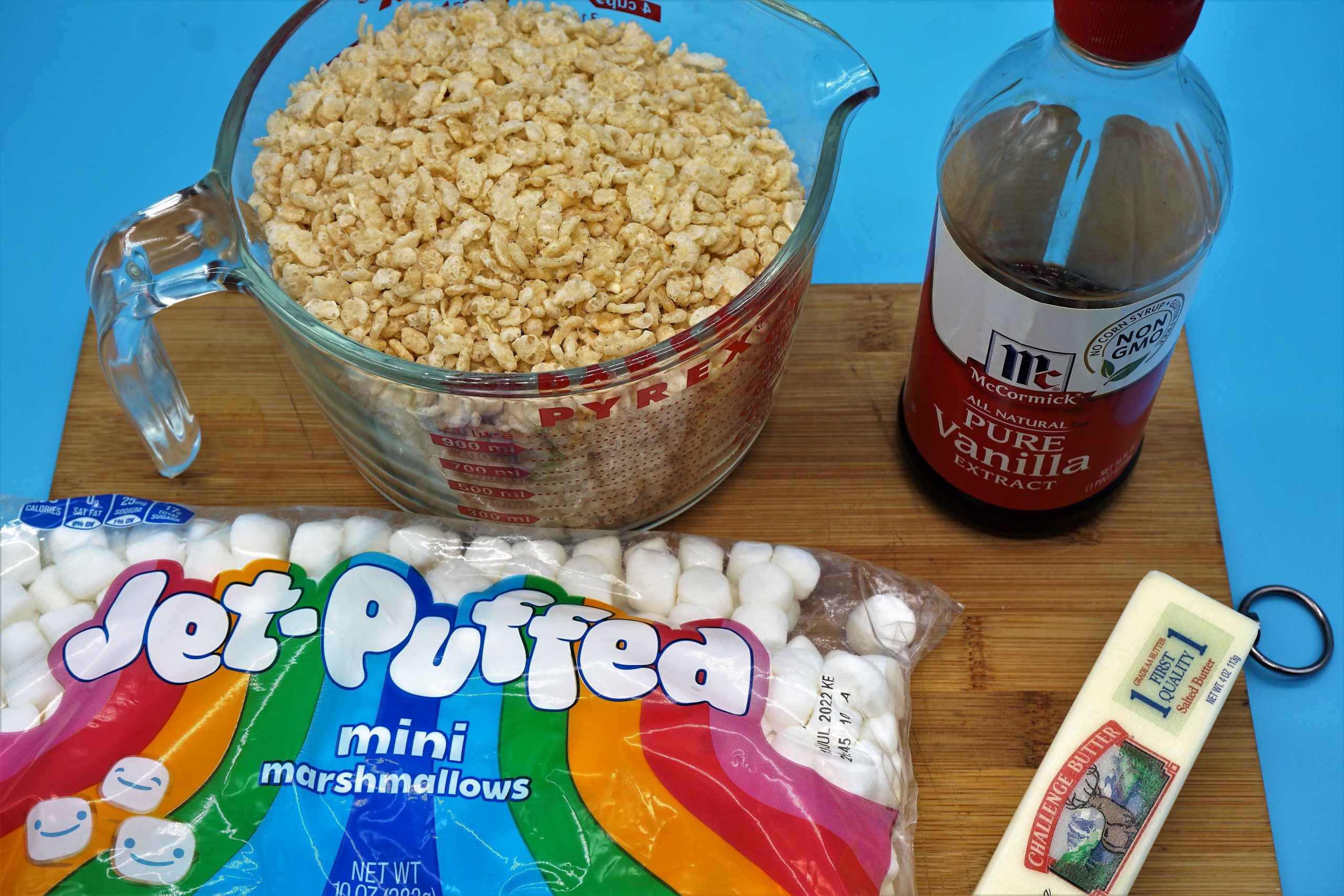 Who doesn’t love a good rice krispies treat? I’ve been enjoying these since the 70’s. They were always at the school bake sales. Invented in 1939 by two Kellogg’s employees in Battle Creek, Michigan, as a promotional vehicle for the cereal. These are an American tradition. Simple ingredients. Easy to find and affordable. I went down the YouTube rabbit hole and compiled a recipe that kicks these up to new heights.