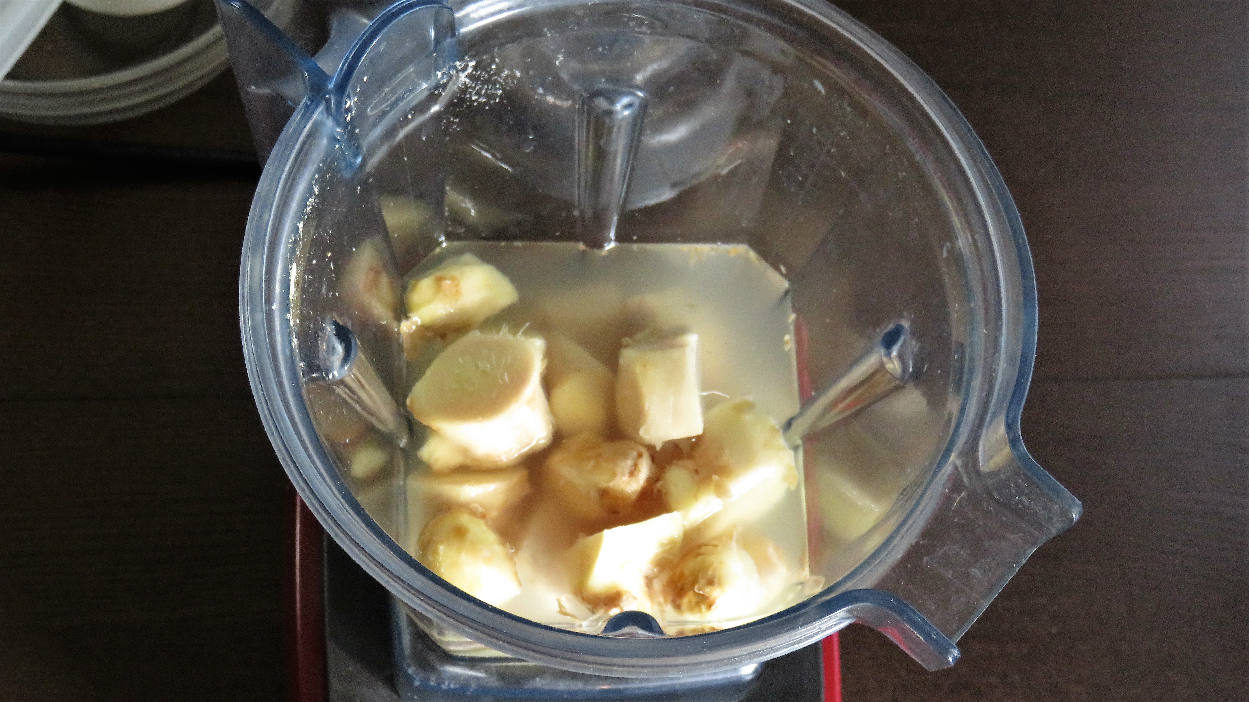 - 2 cups ginger chunks 1 1/2 cups water coconut water