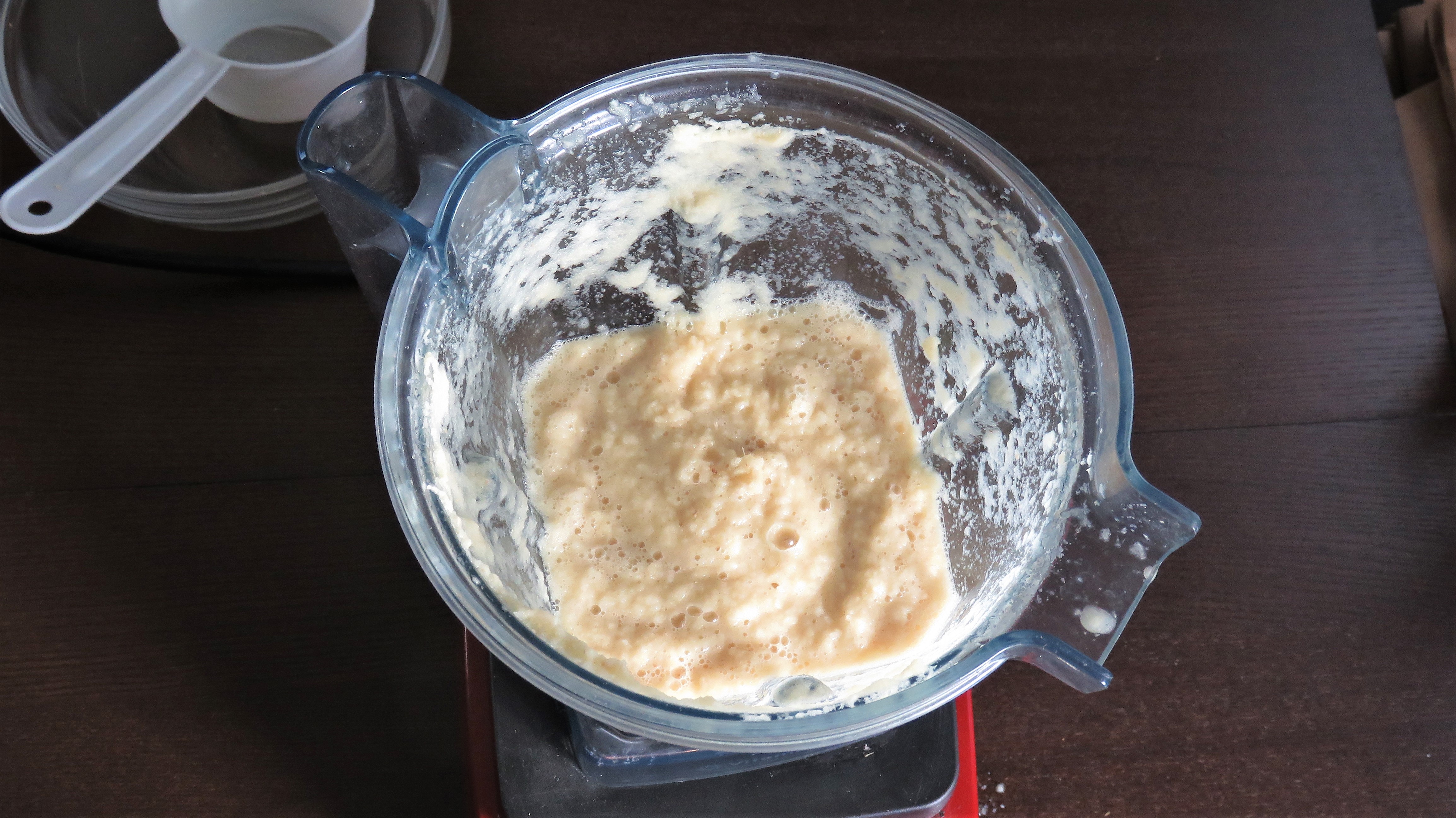 - Add 1 1/2 cups coconut water or water. Place lid on tightly and blend to puree, about 1 minute on high