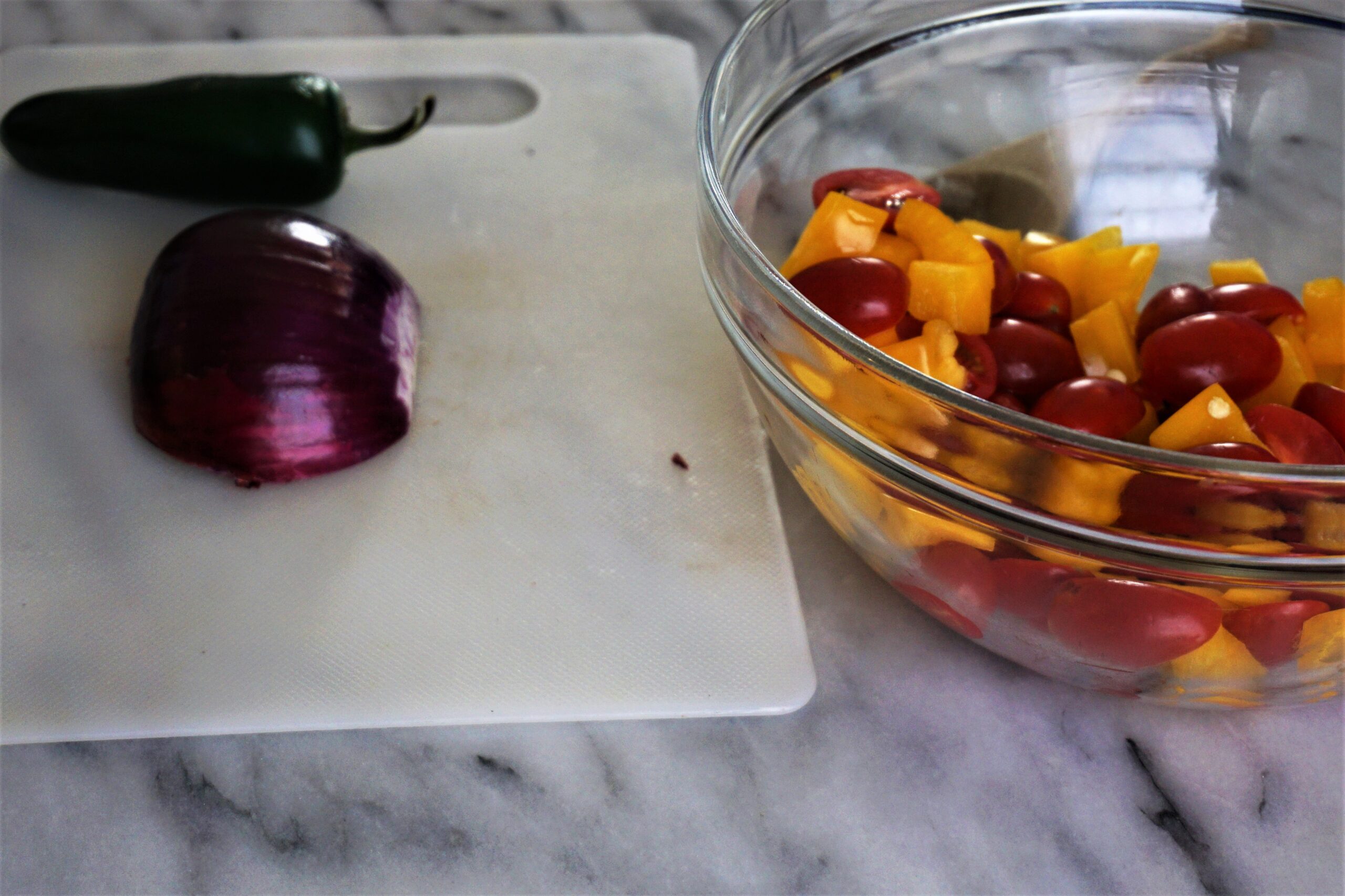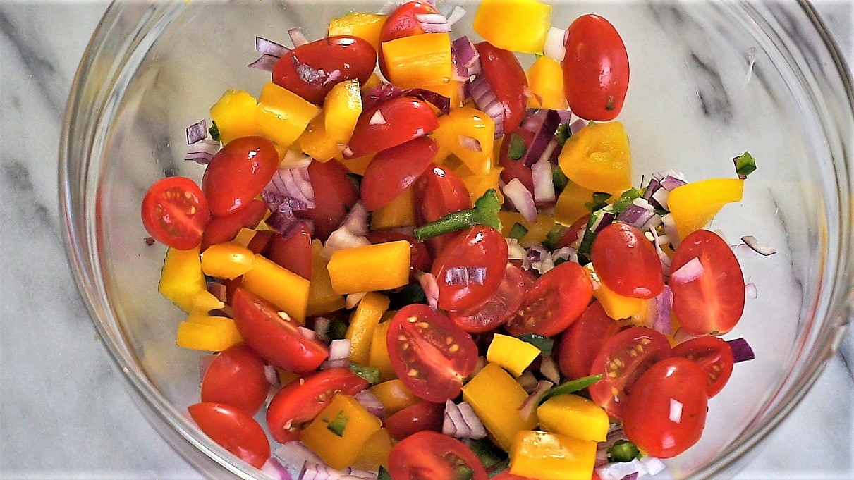 - 1 yellow bell pepper seeded and 1/2-inch diced
