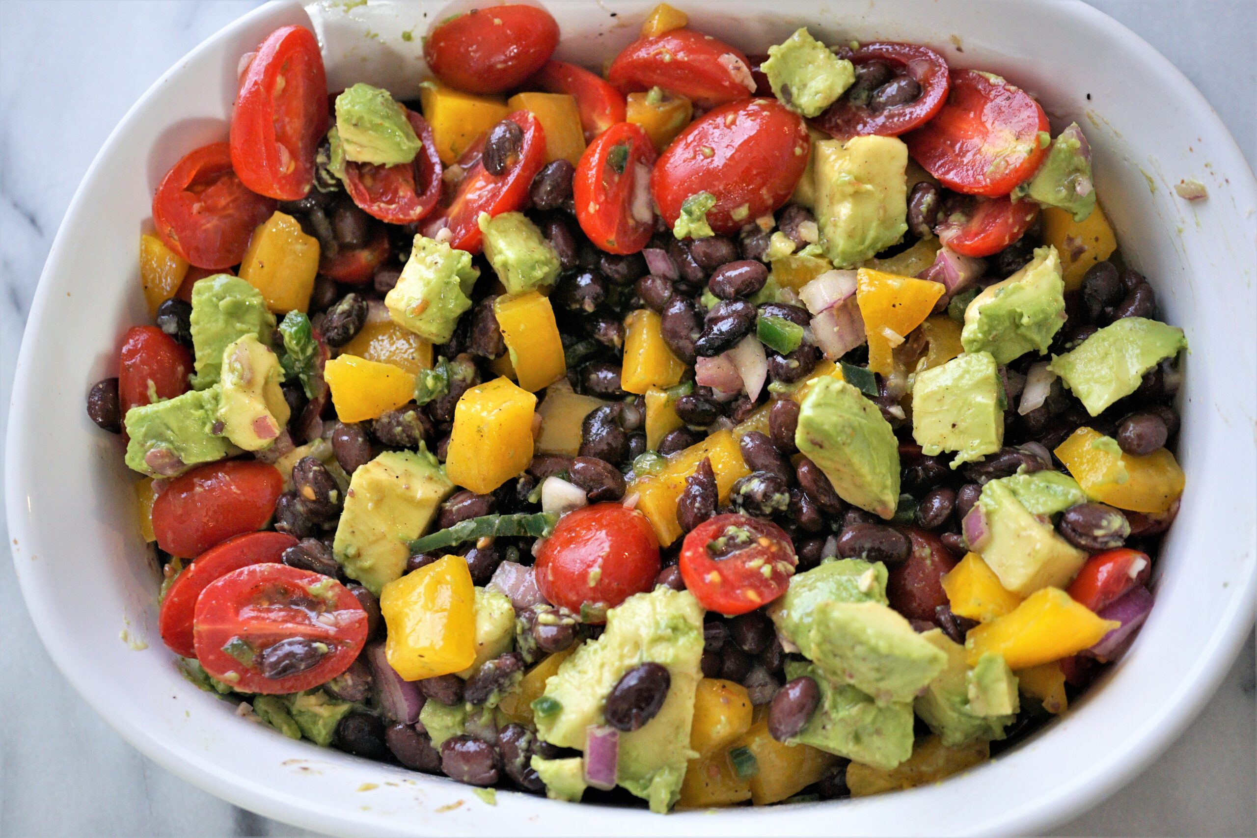 - Just prior to serving, toss the freshly cut avocados and fold them gently into the salad. Check the seasoning and serve at room temperature.