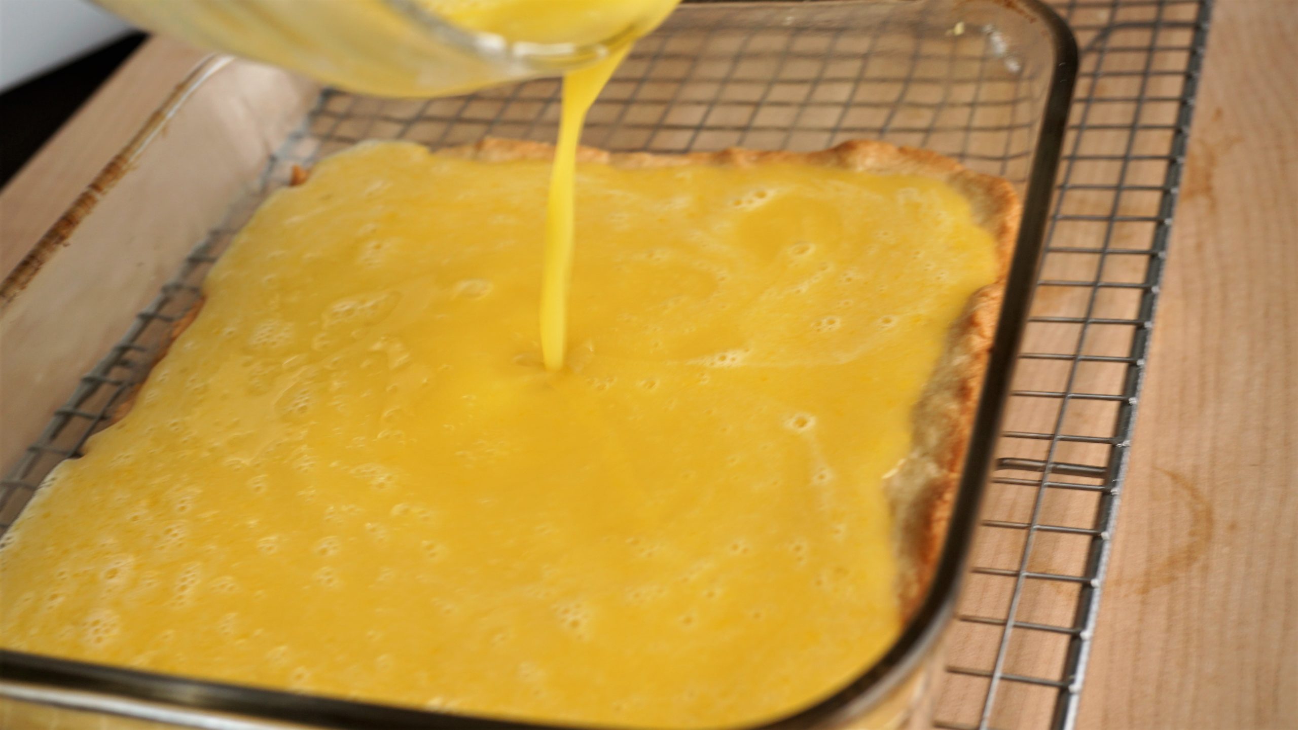 In a bowl, combine all ingredients. Pour over par baked crust. Place back in oven for 20 – 25 minutes until browned on all sides. Let cool completely (1 hour) before icing.