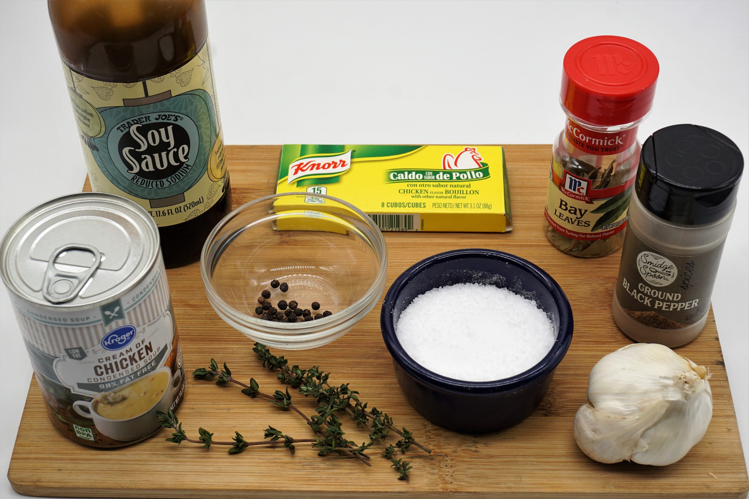 Unquestionably, this soup has really evolved into a kitchen sink soup. I use whatever I have in the pantry and the refrigerator. While chicken stock is actually pretty good in the stores, I prefer to make my own. Whenever I make a roast chicken, I’ll freeze the carcass and the gizzards in a plastic bag for making stock later. Chicken thighs are flavorful and economical and I dry brine them and cook them low and slow. When they’re cooled, I’ll debone and rough chop them to add to the soup. Moreover, I’m conscious of the sodium, so, I won’t add any extra as the soy sauce and the chicken sufficiently add enough salt.