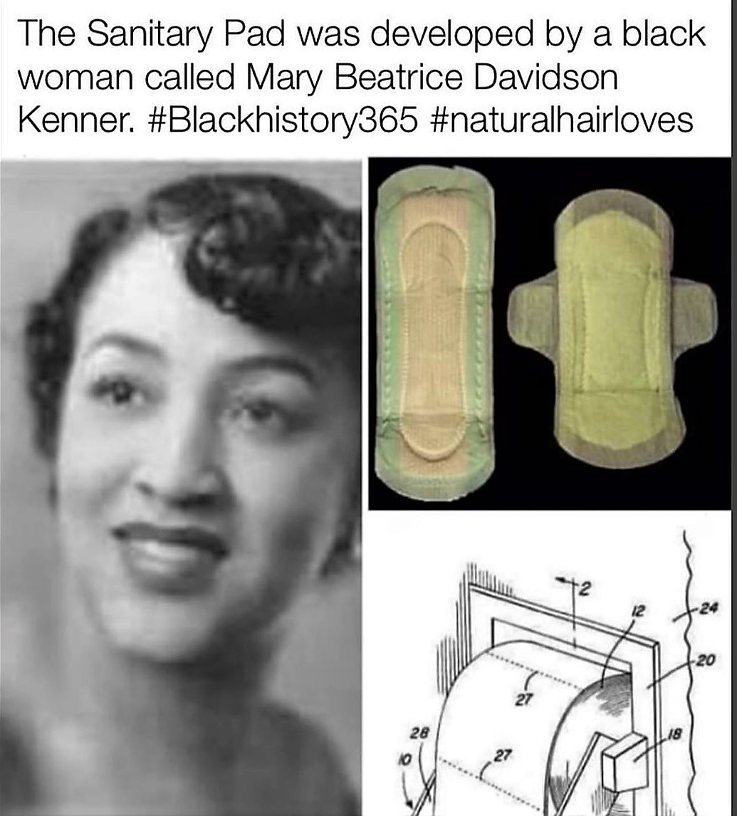 The Sanitary belt (the precursor to the sanitary pad) and the toilet paper holder. Enough said. Women and men pay daily homage to Mary Beatrice Davidson Kenner, (1912-2006). Overall, this great scientist patented 5 products including a serving tray that could be attached to a walking frame and a back washer that could be mounted on the wall of a shower. Surprisingly, this Monroe, North Carolina, native is considered to be one of the most forgotten of the black inventors. Undeniably, her contributions to society are monumental.
